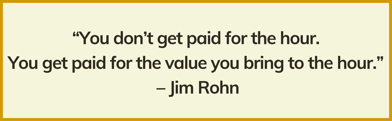 Quote: “You don’t get paid for the hour. You get paid for the value you bring to the hour.” – Jim Rohn